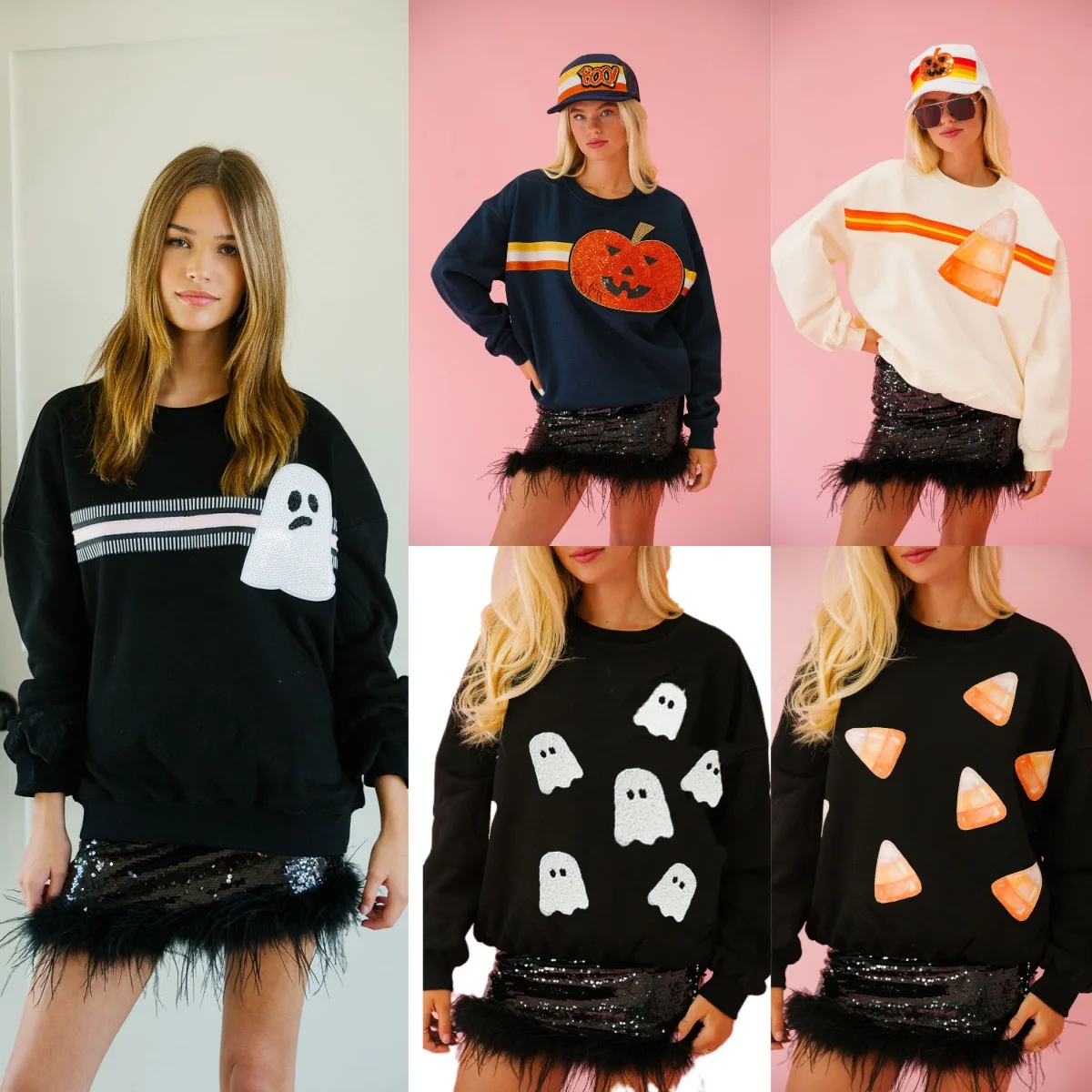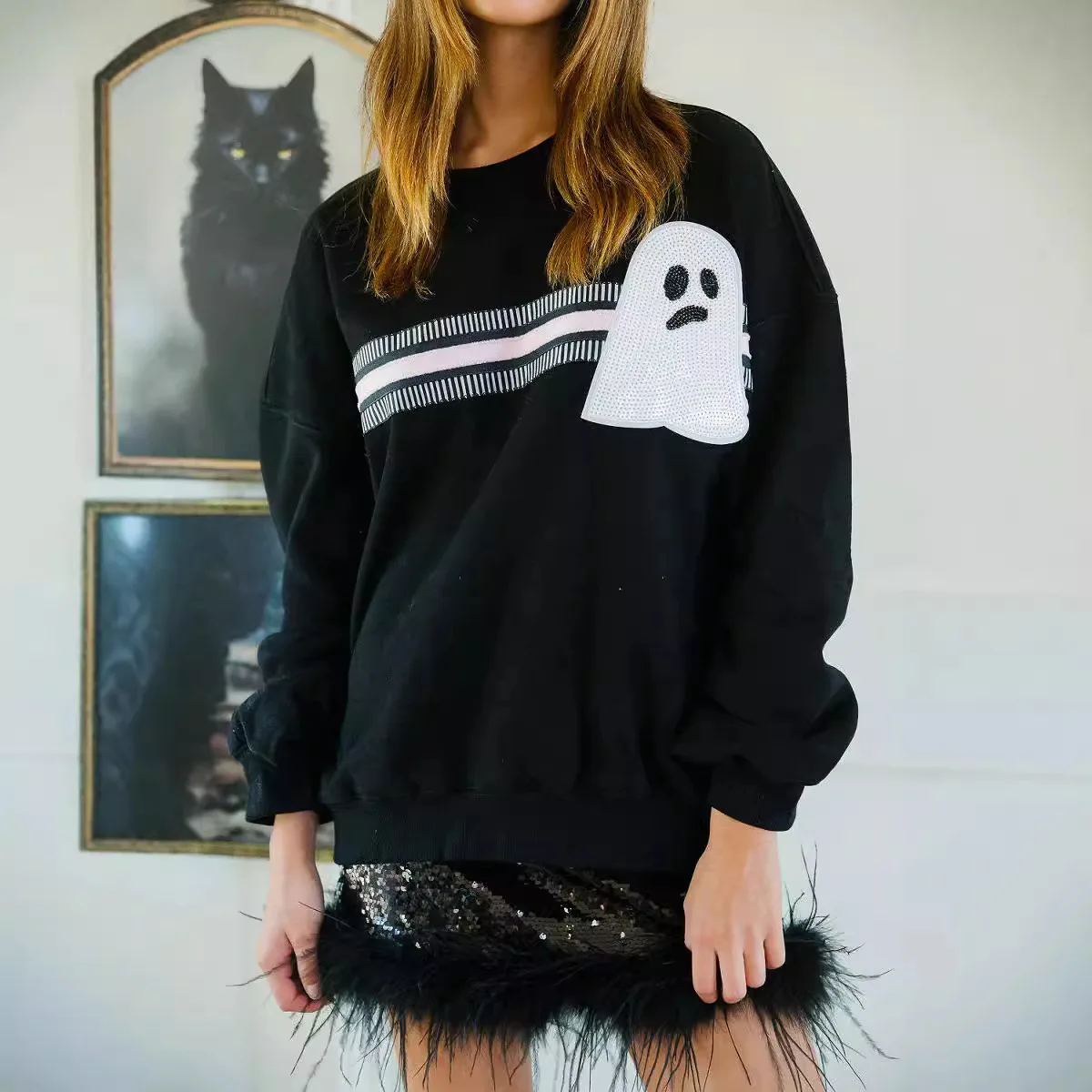 LYG Autumn Winter Women's Top New European American Sequin Sweatshirt Loose Casual Halloween Day Element